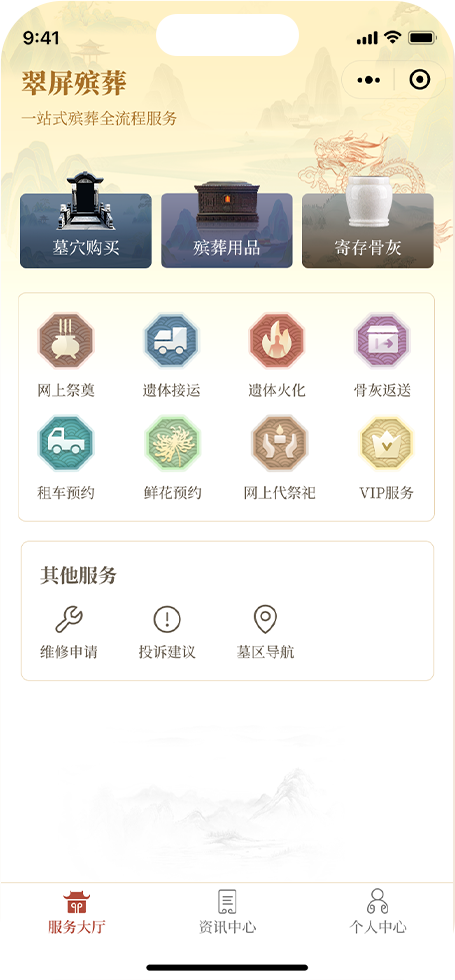 宜賓市翠屏區殯葬管理所自1958年建館以來,堅持公益至上、服務至上、保障至上,以群眾的意愿和需求為出發點和落腳點,堅持以“全程服務優質化、價格平民化”為發展理念。秉持“熱心、省心、暖心、齊心、恒心”的五心服務宗旨,為廣大群眾提供惠民、便捷、溫情、專業的殯葬服務,努力做到讓逝者安息、生者慰籍,讓生命的“最后一站”在這里得到最高“禮遇”。